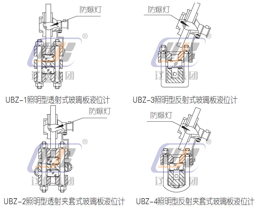 UBZ系列照明型玻璃板液位計(jì)是在UB-1、2、3、4及UBS-1、2、3、4基礎(chǔ)上,配有防爆照明設(shè)施的液位計(jì),它可以在室內(nèi)或夜間直接指示密封承壓容器和開(kāi)口容器中介質(zhì)液位高度。